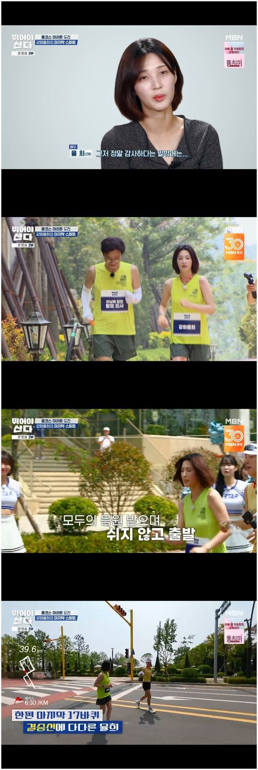 21일 종영한 MBN 예능 ‘뛰어야 산다’에서는 마지막 마라톤 풀코스가 시작되었다. 기나긴 3개월의 여정에서 차근차근 성장해온 이들은 42.195km라는 엄청난 길이에 주춤했으나 12명의 도전자가 도전장을 내밀었다.