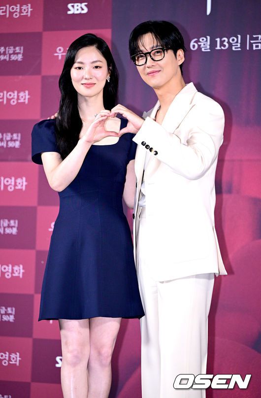 [OSEN=최규한 기자] 10일 오후 서울 용산 CGV에서 SBS 새 금토드라마 ‘우리영화’ 제작발표회가 열렸다.드라마 ‘우리영화’는 다음이 없는 영화감독 이제하(남궁민 분)와 오늘이 마지막인 배우 이다음(전여빈 분)의 내일로 미룰 수 없는 사랑 이야기를 그린다.배우 남궁민과 전여빈이 포토타임을 하고 있다. 2026.06.10 / dreamer@osen.co.kr |