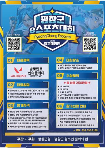 이번 대회는 평창군 내 중·고등학생을 대상으로 진행되며 게임 종목은 '발로란트'로 학교 대항전 형식으로 진행된다.