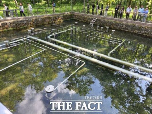 수원지는 사람의 손길이 닿지 않는 숲 속에 있었다. 이곳은 축사나 공장은 물론 농업조차 허가되지 않는 천연자연보호지대로 수원지 시설만 정부와 계약을 맺고 지어졌다. 안명식 대표는 "백두산 천지에서 시작된 물은 지하 암반을 45km 거쳐 매일 같은 온도(6.8~7℃)로 뿜어져 나오고 있다"며 "여름에는 시원하고, 겨울에는 얼지 않는 수원지를 찾아 자리를 잡았다"고 설명했다.