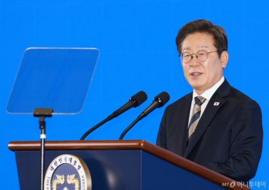 [울산=뉴시스] 고범준 기자 = 이재명 대통령이 20일 울산전시컨벤션센터에서 열린 울산 AI데이터센터 출범식에서 격려사를 하고 있다. 2025.06.20. bjko@newsis.com /사진=고범준 |