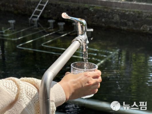[중국(연길)=뉴스핌] 조민교 기자 = 내두천에서 솟아오른 물을 그 자리에서 직접 맛봤다. 2025.06.19 whalsry94@newspim.com |