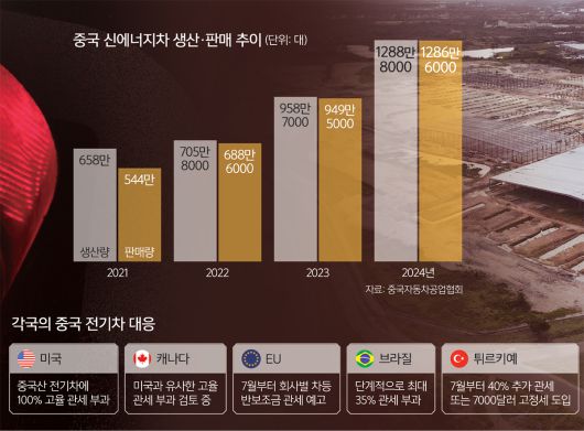 중국 전기차 업계의 과잉생산과 가격 경쟁은 일시적 현상이 아니다. 2023년 중국의 전기차 생산량은 1289만대로 전년 대비 34% 증가했지만 같은 기간 내수 판매 증가율은 22%에 그쳤다. 과잉생산 구조가 고착되고 있다는 지적이 나오는 이유다.