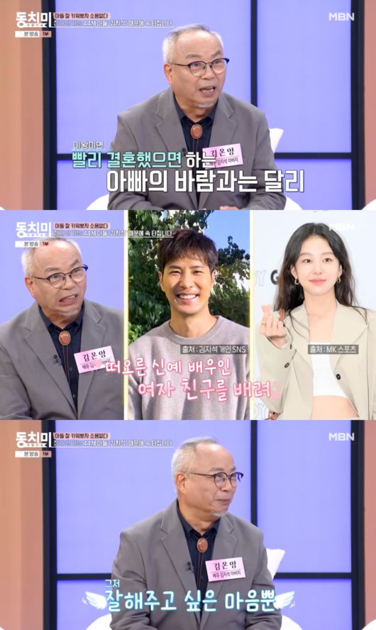 지난 21일 방송된 MBN ‘속풀이쇼 동치미’에서 김지석 아버지 김온양은 “큰아들은 이미 결혼을 했다. 그런데 둘째 김지석은 배우라는 이유로 결혼을 늦추고 있다”며 “결혼하면 팬이 줄어든다고 하더라”고 말문을 열었다. 이어 “어느덧 나이가 38살이 되니까 자기 조카들과 나이 차가 생기지 않느냐”며 걱정을 드러냈다.