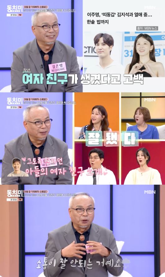 김온양은 이주명과의 첫 만남 당시 성격검사를 해주며 호감을 확인했다고 전했다. 그는 “알고 보니 띠동갑이더라. 아들이 도둑놈 소리를 많이 들었다”며 너스레를 떨었다. 이어 “세대 차이가 있어서 대화가 쉽진 않았지만, 아들이 여자친구 앞날을 생각해 결혼을 서두르지 않으려 한다더라”며 김지석의 배려심 깊은 면모를 전했다.