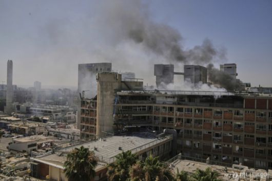 [베르셰바=AP/뉴시스] 19일(현지 시간) 이스라엘 베르셰바에 있는 소로카 병원 단지 내 건물이 이란의 미사일 공격을 받아 연기가 피어오르고 있다. 이란 혁명수비대는 “병원 근처 이스라엘군 지휘·정보센터가 타격받았다”라고 주장했다. 2025.06.20. /사진=민경찬 |