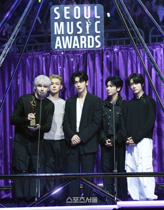 투모로우바이투게더가 21일 오후 인천 중구 인스파이어 아레나에서 열린 제34회 ‘서울가요대상’에서 본상을 수상한 뒤 소감을 밝히고 있다. 인천 | 박진업 기자 upandup@sportsseoul.com |