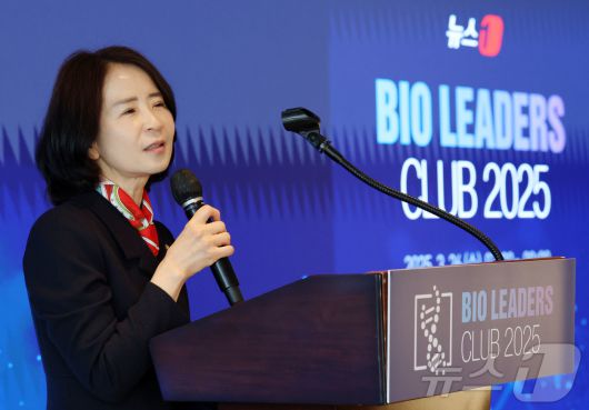 최수진 국민의힘 의원이 26일 오전 서울 중구 조선호텔에서 열린 뉴스1 제24회 바이오리더스클럽에서 축사를 하고 있다. 2025.3.26/뉴스1 ⓒ News1 박세연 기자 |