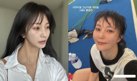 사진 속에는 축구 연습 후 셀카를 촬영 중인 안혜경의 모습이 담겨있다.