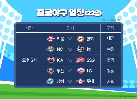 - 키움 vs 한화 (대전·17시)- NC vs kt (수원·17시)