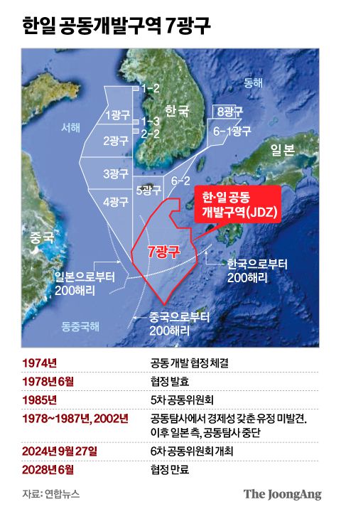 이른바 ‘7광구’ 문제에 대해 양국이 얼굴을 마주한 것은 지난해 9월. 종료 시한이 다가오면서 일본 도쿄에서 7광구 공동 개발을 위한 실무 회의가 39년 만에 열렸지만, 합의점이 도출되진 못했다.