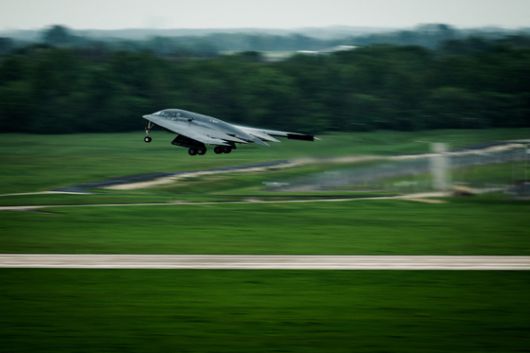 지난 4월 30일(현지시간) B-2 스텔스 폭격기가 미국 미주리주 화이트맨 공군기지에서 이륙하고 있다. 로이터=연합뉴스 |