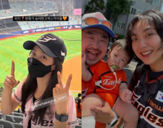 이 외에도 소녀시대 유리는 한화 이글스의 12연승을 직관하는 모습을 올리며 “한화가 승리한 고척스카이돔”, “12연승”의 멘트를 덧붙였고, 강재준도 아내 이은형, 아들 현조와 함께 대전 직관에 나선 모습을 보였다. 또한 배우 김기천은 “단독 1위”라고 짧고 굵은 소감을 전해 기쁨을 나눴다. /cykim@osen.co.kr