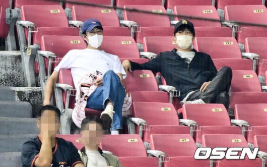 [OSEN=잠실, 조은정 기자] 7일 서울 잠실구장에서 2023 신한은행 SOL KBO리그 두산 베어스와 한화 이글스의 경기가 열렸다.배우 조인성, 차태현이 경기를 지켜보고 있다. 2023.06.07 /cej@osen.co.kr |