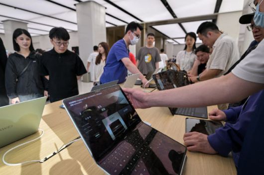 중국 상하이의 화웨이 매장에서 고객들이 제품을 살펴보고 있다. (사진=AFP) |