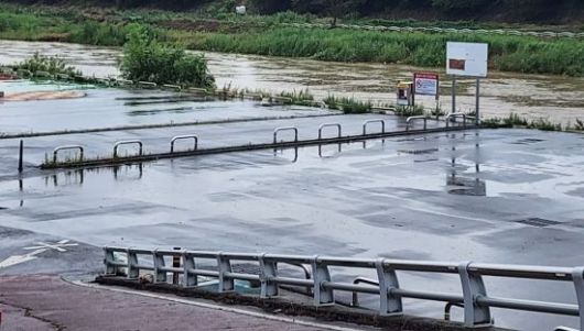호우주의보 발령에 따라 통제 조치된 세종시 조치원 조천 둔치주차장. /사진= 충청취재본부 김기완 기자 |
