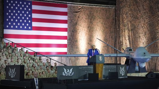 ▲ 현지 시간 지난달 15일 카타르의 알우데이드 공군기지 찾은 도널드 트럼프 미국 대통령