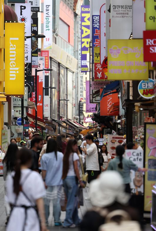 정부가 30조5000억원 규모의 2차 추가경정예산(추경)안을 편성했다. 정부는 지난 19일 이재명 대통령 주재로 국무회의를 열고 2차 추경안을 심의·의결했다. 뉴시스 서울 시내 상점가에서 시민들이 오가고 있다. 뉴시스 |