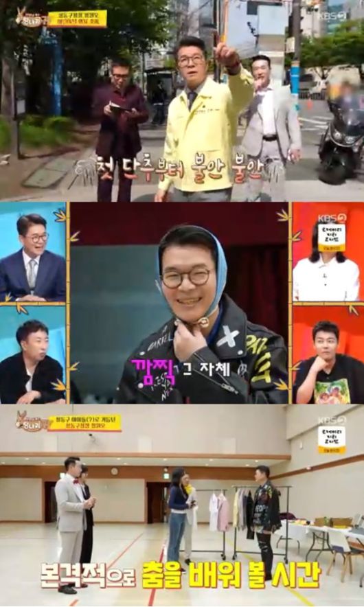 정원오는 '위플래시' 춤을 택견처럼 춰 웃음을 자아냈다. 비서진은 정원오의 춤사위에 웃음을 참느라 힘들어 했다.