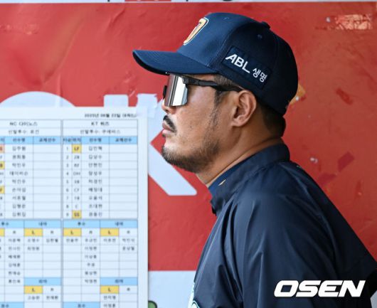 [OSEN=수원, 이대선 기자] 22일 오후 수원 KT위즈파크에서 2025 신한 SOL Bank KBO리그 KT 위즈와 NC 다이노스의 경기가 열렸다. KT는 쿠에바스, NC는 로건을 선발투수로 내세웠다 NC 이호준 감독이 더그아웃에서 경기를 바라보고 있다. 2025.06.22 /sunday@osen.co.kr