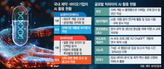그동안 제약·바이오업계에서 AI는 후보물질 발굴 등 의약품 개발 단계에 주로 활용돼왔다. 초기 딥러닝 기반 AI가 분자구조를 이미지화해 구조를 예측하는 데 강점을 보였기 때문이다. 일례로 삼성바이오에피스는 빅데이터를 바탕으로 세포주 품질을 높이고 의약품 제조에 필요한 배양조건을 시뮬레이션해왔다. SK바이오팜은 자체 AI 플랫폼 ‘허블’로 질병 유발 유전자 및 단백질 분석, 후보물질 발굴 등의 작업을 진행했다.