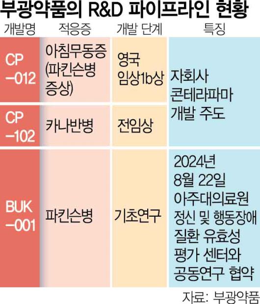 이번 생산설비 확대는 지난 3월 단행한 약 931억 9785만 원 규모의 유상증자를 재원으로 활용한다. 확보한 자금 중 845억 원은 제조설비 신규 취득에, 86억 9800만 원은 연구개발(R&D) 운영자금에 각각 투입할 예정이다. R&D 자금 중 일부는 퇴행성 뇌질환 치료제 개발에 사용된다. 부광약품은 연내 해당 신약 파이프라인에 대한 임상시험계획(IND)을 식품의약품안전처에 제출할 계획이다. 자회사 콘테라파마를 통해 파킨슨병 치료제 ‘CP-012’의 임상시험도 병행하고 있다. CP-012는 기존 파킨슨병 치료제의 한계였던 아침무동증을 해결해 줄 수 있는 신약으로 꼽힌다. 현재 글로벌 임상1b상을 진행 중으로, 빠르면 다음달 결과가 나올 것으로 보인다. 회사 측은 임상시험에서 긍정적인 결과가 도출되면 기술수출 등을 통한 매출 창출도 가능할 것으로 기대하고 있다.