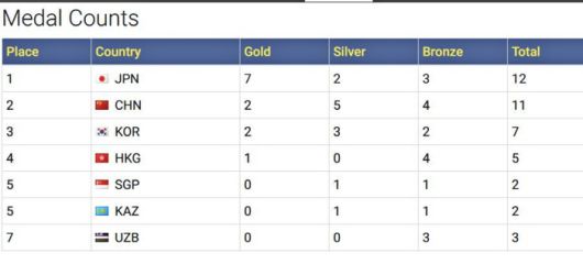 펜싱코리아가 믿었던 단체전에서 노골드를 기록했다. '함께일 때 더 강했던' 대한민국의 장점이 사라졌다. 중국에게 대회 마지막, 여자 에페 금메달을 내주며 한국은 중국에도 밀렸다. 금메달 2개(남자 사브르 도경동, 여자 에페 송세라), 은메달 3개(여자 사브르 단체, 남자 사브르 단체, 여자 에페 단체), 동메달 2개(여자 사브르 김정미, 남자 에페 단체)로 일본, 중국(금2, 은5, 동4)에 이어 종합 3위로 내려앉았다. 일본은 이날 남자 플뢰레 단체전 금메달까지 단체전 6종목 중 여자 에페를 제외한 5종목 금메달을 휩쓸었다. 금메달 7개, 은메달 2개, 동메달 3개를 휩쓸며 종합 1위에 올랐다.
