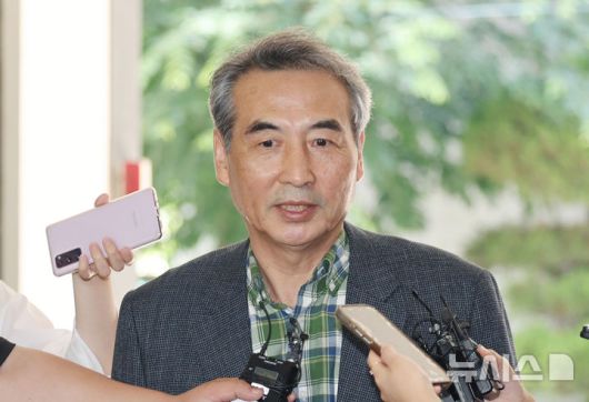 [서울=뉴시스] 추상철 기자 = 채상병 순직사건 외압 의혹을 수사하는 이명현 특별검사가 22일 오전 서울 서초구 서초동 사무실로 출근하며 취재진의 질문에 답변하고 있다. 2025.06.22. scchoo@newsis.com |