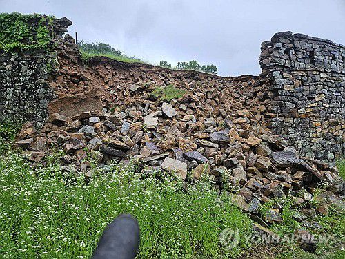 (전주=연합뉴스) 임채두 기자 = 거센 장맛비가 모두 그친 22일 전북에서 고창읍성의 서문 옹성이 무너지는 등 크고 작은 피해가 잇따랐다.