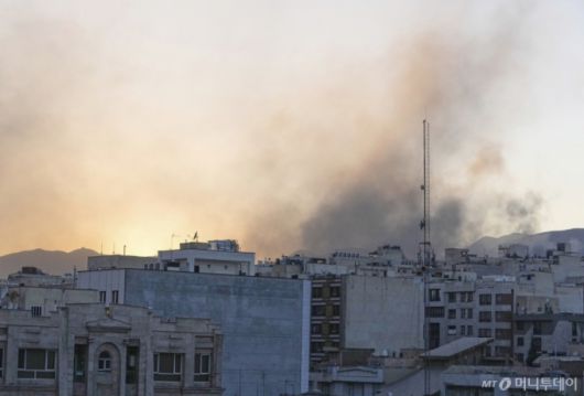 지난 18일(현지시간) 이란 테헤란에서 이스라엘의 공격을 받은 후 연기가 치솟고 있다. / AP=뉴시스 |