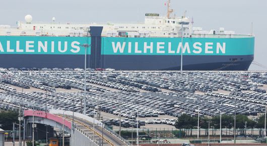 수출용 자동차가 세워진 경기도 평택항. [사진=연합뉴스] |