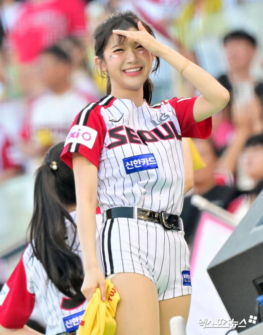 (엑스포츠뉴스 잠실, 김한준 기자) 22일 오후 서울 송파구 잠실야구장에서 열린 '2025 신한 SOL Bank KBO리그' 두산 베어스와 LG 트윈스의 경기, 이주은 치어리더가 미소를 보이고 있다.김한준 기자 kowel@xportsnews.com