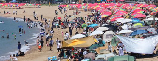 이에 시민들은 시원한 바닷물에 뛰어들어 물놀이를 즐겼다. 백사장에 늘어선 파라솔 아래에선 일광욕을 즐기거나 시원한 음료를 마시며 더위를 피하는 가족 단위 피서객들이 많았다.