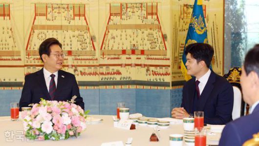 이 대통령은 이날 한남동 관저에 더불어민주당 김병기 원내대표, 국민의힘 김용태 비상대책위원장과 송언석 원내대표를 초청해 낮 12시부터 약 105분간 국수를 함께 먹었다.