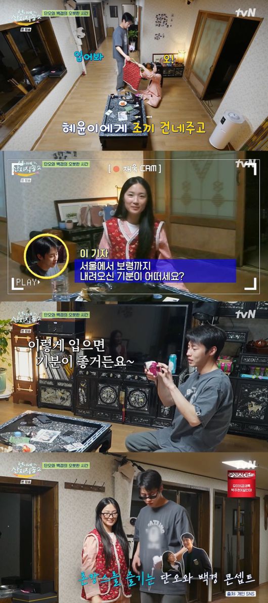 김혜윤은 "귀엽다. 나 이런 거 너무 좋다"라며 곧바로 조끼를 입었고, 이재욱은 옛날 캠을 들고 와서 김혜윤을 찍어줬다.