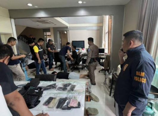 한국인 온라인사기 조직 체포 현장. 방콕포스트 SNS 캡처 |