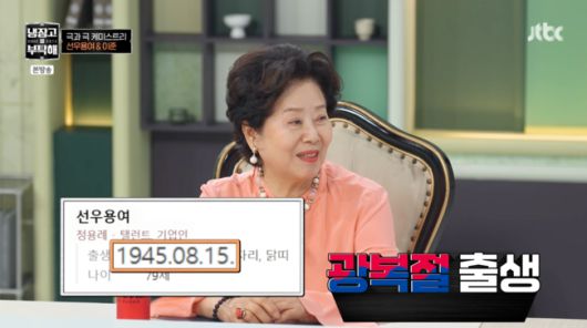선우용여는 최근 너튜브 인기에 대해 “나는 81세 이상이 좋아하실 줄 알았는데 젊은 분들이 너무 좋아하니까 내가 너무 행복해”라며 MZ들의 관심에 즐거워하는 모습을 보였다. 1945년 8월 15일인 광복절에 태어난 선우용여는 “나보고 해방둥이라고 그랬어”라고 설명했다.