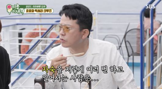 이날 크루즈에서 떡볶이를 먹던 중 최진혁은 김준호에게 "형수님(김지민)은 형의 어떤 부분이 좋아서 결혼하는 거냐"라고 물었다. 이에 김준호는 "지민이는 나를 오래 봤다. 나에 대해 많이 안다"라며 "자숙을 이렇게 여러 번 하고 일어서는 사람은 자기도 책임질 수 있다. 이런 거다"라고 말했다.