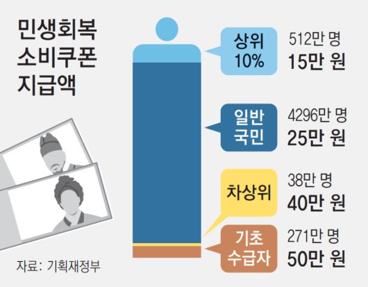 앞서 정부는 20조 원을 새로 풀어 민생회복 소비쿠폰 발행 등에 쓰는 내용의 새 정부 추경안을 발표했다. 이에 따라 상위 10%의 고소득층은 총 15만 원, 이에 해당하지 않으면 25만 원의 현금성 소비쿠폰을 내달부터 받게 된다. 차상위계층과 기초수급자 등 취약계층 지원액은 각각 40만 원, 50만 원으로 더 많고 84개 농어촌 인구소멸지역 거주자는 2만 원을 추가로 받는다.