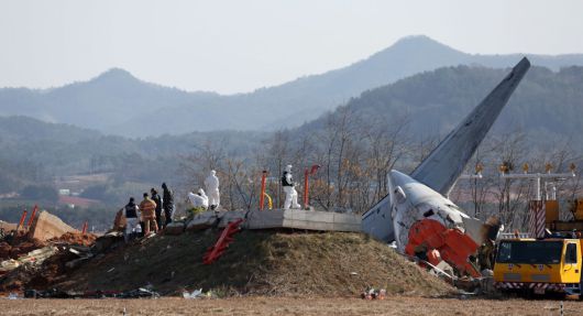 2일 전남 무안국제공항 제주항공 여객기 참사 현장에서 항공·철도사고 조사위원회(ARAIB) 관계자들이 로컬라이저(방위각 표시 시설)가 설치된 콘크리트 둔덕을 조사하고 있다. 2025.01.02. 뉴시스 |