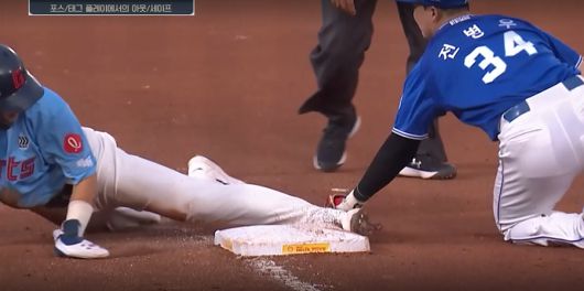 결국 고승민은 전병우의 글러브가 자신에게 닿기 전 왼손으로 먼저 베이스를 찍는 데 성공했다. 슬라이딩해 몸이 앞으로 밀리며 왼손이 베이스에서 떨어지자 재빨리 왼발로 베이스를 터치했다. 고승민의 발이 떨어졌을 때 전병우가 태그를 시도했지만 고승민의 몸이 아닌 땅을 찍은 것으로 보였다.