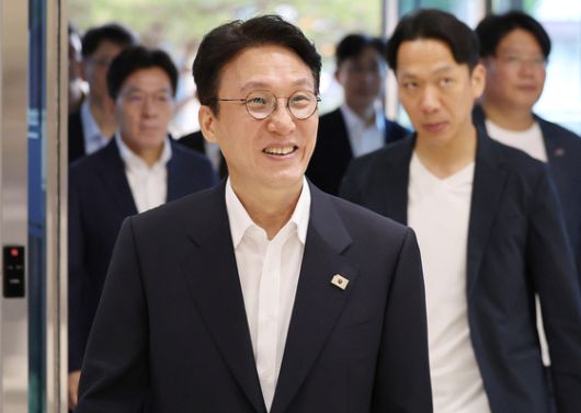 김민석 국무총리 후보자가 20일 오전 대구 수성구 알파시티 내 대구디지털혁신진흥원에 도착해 '인공지능 전환(AX) 연구거점 조성을 위한 경청 간담회'가 열리는 회의실로 향하고 있다. 뉴스1 |