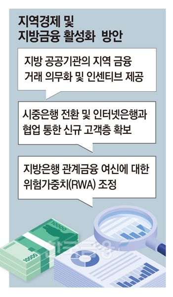 가장 많이 언급되는 방안이 지방은행 관계금융 여신에 대한 위험가중치(RWA) 조정이다. 지방은행 관계금융이란 지방은행이 지역 경제 활성화를 위해 특정 지역이나 기업과의 지속적인 거래 관계를 통해 신뢰를 쌓고, 이를 대출심사 시에 비재무적 요소로 반영하는 것을 말한다. 지역기업과 지방은행이 연계해 사업을 진행할 수 있다면 여신 활용의 유연성을 확보할 수 있다는 게 전문가들의 주장이다.