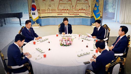 박 수석대변인은 "'시작이 반'이라고 했듯 오늘 회동은 첫 시작으로서 의미가 있다"며 "과거 정부가 (대통령과 야당 간 회동에) 720일이 걸린 것과 비교해 대선 후 18일 만에 여야 지도부가 함께한 만큼 정치 복원을 위해 야당과 적극적으로 소통하겠다"고 말했습니다.
