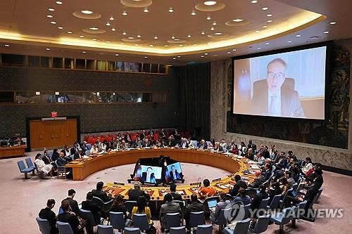 안보리 브리핑하는 그로시 IAEA 사무총장 |