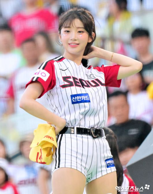 (엑스포츠뉴스 잠실, 김한준 기자) 22일 오후 서울 송파구 잠실야구장에서 열린 '2025 신한 SOL Bank KBO리그' 두산 베어스와 LG 트윈스의 경기, 이주은 치어리더가 열띤 응원을 선보이고 있다.김한준 기자 kowel@xportsnews.com