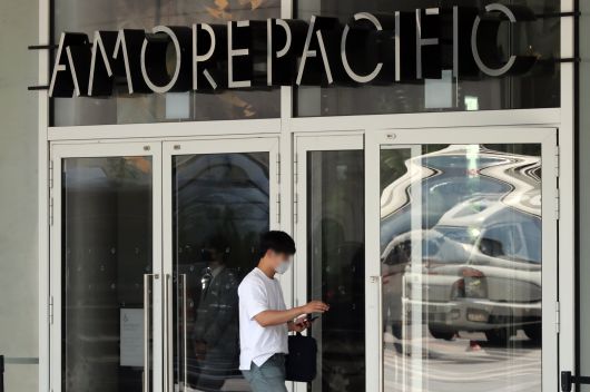 서울 용산구 아모레퍼시픽 건물로 시민들이 들어가고 있다. /뉴스1 |