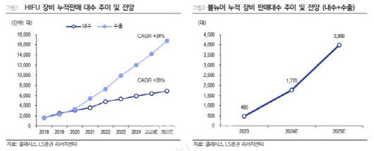 조 연구원은 “올 2분기 클래시스 매출액은 853억원으로 전년 동기 대비 45% 증가하고 영업이익은 429억원으로 같은 기간 38% 늘어 컨센서스(매출 844억원, 영업이익 421억원)를 상회할 것”이라며 “2024년 주요 국가에 판매를 시작한 볼뉴머 장비 수출 효과로 매분기 볼뉴머 장비 판매대수 고성장이 예상된다”고 진단했다.
