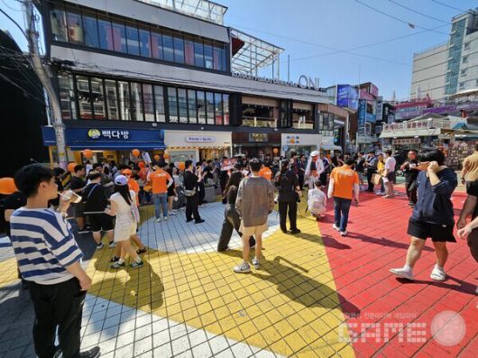 홍대 거리를 지나가던 이용자들도 행사에 합류하는 모습을 볼 수 있었다 / 게임와이 촬영 |