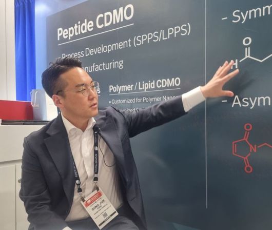 [보스턴=뉴시스]송연주 기자 = "펩타이드와 PEG(폴리에틸렌글리콜) 결합으로 차별화된 의약품 위탁개발생산(CDMO) 역량을 갖췄습니다."